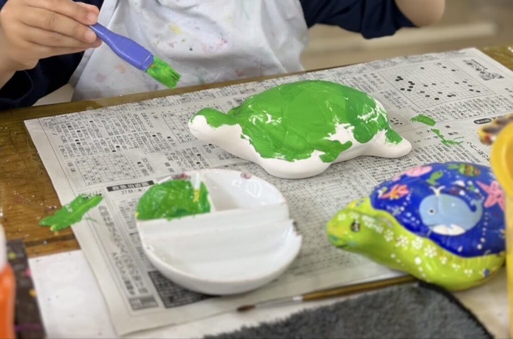 今回の滞在中はほとんどが雨だったため、室内のアクティビティができるむら咲むらでウミガメの色付け体験、琉球貸衣装での写真撮影、紅型体験、シーサーづくりを行いました。
